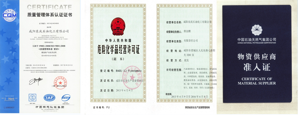 我公司屬煉油化工產(chǎn)品研發(fā)、生產(chǎn)、服務、銷售一體化的綜合性企業(yè)。通過ISO9001-2008質(zhì)量管理體系認證,具有中國石油天然氣集團公司物資供應資質(zhì),危險化學品經(jīng)營資質(zhì)。
